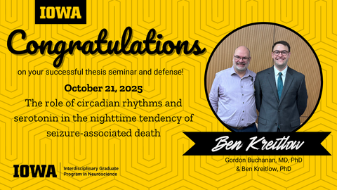 Please join us in celebrating Ben Kreitlow, the Neuroscience Interdisciplinary Graduate Program’s newest PhD!